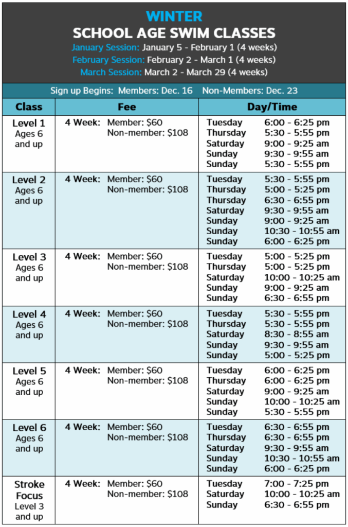 Level 1 – Swim School (Ages 6 & up)