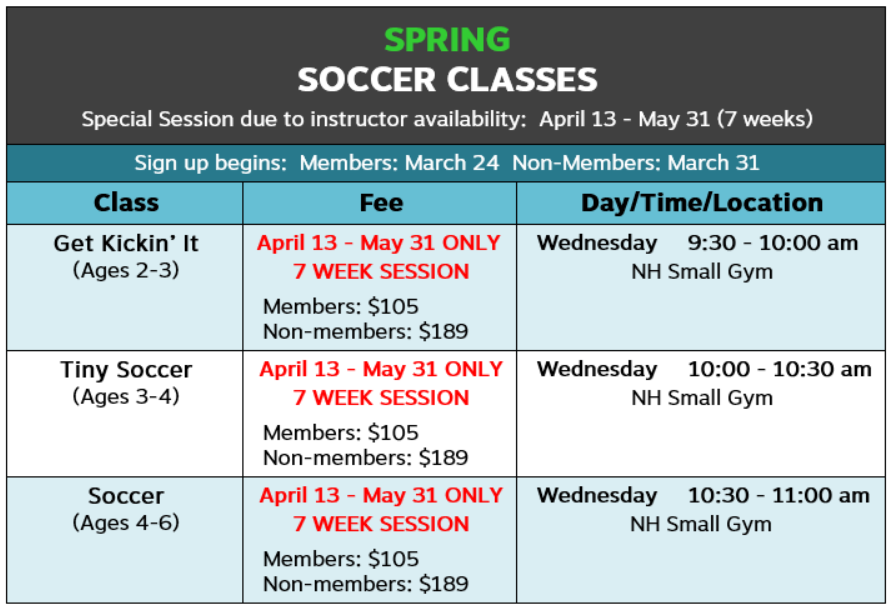 Contact Whitney Benedetti at (507) 287-9314 for more information about Kids Sports and Fitness classes and programs. Select the expandable sections below to display class dates and descriptions.